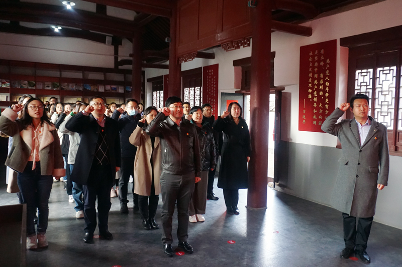 最后,全體黨員沐浴著革命先輩的光輝,向著黨旗共同宣誓,重溫入黨誓詞。