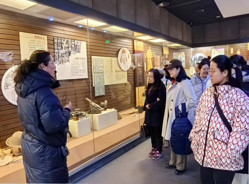 3月8日上午,市財政局、財金集團及旗下權(quán)屬公司女職工共同參觀了招遠市黃金博物館。在講解員的帶領(lǐng)下,大家通過文字、實物、模型、圖片等形式以及聲、光、電、全息幻影成像等高科技手段,詳細了解了金都招遠的黃金資源、采金歷史、產(chǎn)業(yè)發(fā)展和經(jīng)貿(mào)往來。漫步在博物館中,如閱讀一部展現(xiàn)古今黃金文化的百科全書,將斑駁雜陳的黃金歷史文化層層鋪展,感受黃金源遠流長的歷史文化和獨特的工藝技藝魅力。