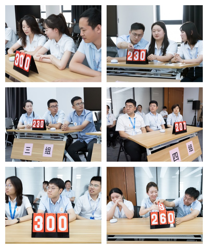 在個人必答環(huán)節(jié),選手們睿智沉著、對答如流,勢均力敵;搶答環(huán)節(jié),各組聚精會神,默契配合,拼腦力、比手速、展實力,比分“你追我趕”,場上氣氛緊張刺激,掌聲連連;風(fēng)險題環(huán)節(jié)的驚險賽制更將比賽推向高潮,各組博弈交鋒,上演了一場精彩的腦力與知識的“較量”,展現(xiàn)了集團(tuán)員工扎實的理論功底和良好的學(xué)習(xí)成效。