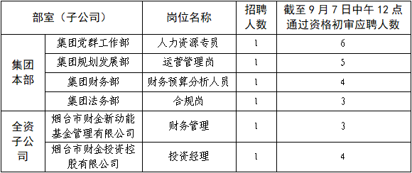 截至9月7日中午十二點(diǎn)(以報(bào)名郵箱簡(jiǎn)歷收到時(shí)間為準(zhǔn)),崗位通過(guò)資格初審報(bào)名人數(shù)與崗位需求人數(shù)比例滿(mǎn)足最低3:1的比例要求,視為達(dá)到面試條件,第一批次面試崗位見(jiàn)下表: