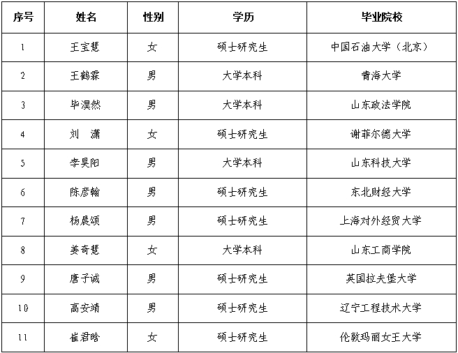 按照面試成績(jī)排名,本次擬確定11人進(jìn)入公示環(huán)節(jié),公示期間如有異議,請(qǐng)與煙臺(tái)市財(cái)金發(fā)展投資集團(tuán)有限公司聯(lián)系,電話:0535-6887276。